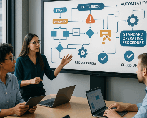We assess your existing workflows, identify bottlenecks, and redesign processes to reduce inefficiencies. This may include introducing new tools, automating tasks, and creating standard operating procedures to ensure consistency.