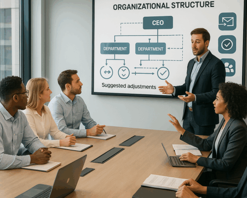 We evaluate your current organisational structure and recommend adjustments to improve communication, accountability, and decision-making. We also guide teams through changes, ensuring smooth adoption.